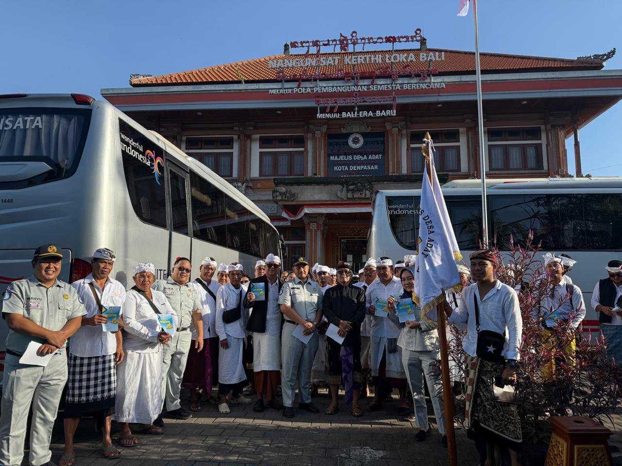 Majelis Desa Adat (MDA) Provinsi Bali bersama Jasa Raharja melepas peserta program Tangkil Gratis ke Pura Besakih dalam rangka Karya Ida Batara Turun Kabeh (IBTK), Rabu (22/4/2026) pukul 07.30 Wita. Pelepasan dilakukan oleh Panyarikan Agung MDA Provinsi Bali, Dr. Dewa Nyoman Rai Asmara Putra, SH., MH., didampingi Patajuh Bandesa Agung Baga Kerjasama, Informasi, Inovasi, dan Pengelolaan Data MDA Provinsi Bali, I Made Abdi Negara, atas seizin Bandesa Agung MDA Bali.