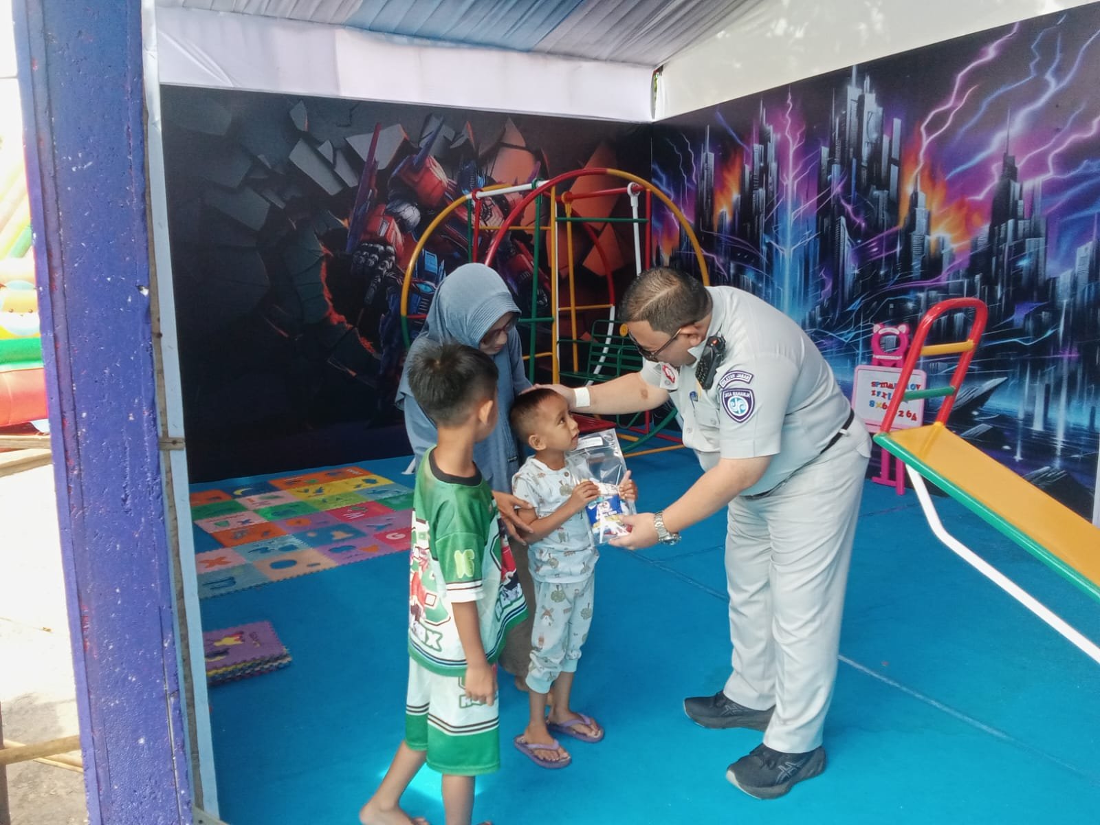 Tasikmalaya – Dalam rangka mendukung kelancaran serta meningkatkan keselamatan masyarakat pada periode arus balik Hari Raya Idul Fitri 1447 H, PT Jasa Raharja melaksanakan kegiatan pembagian bingkisan kepada para pengguna jalan yang singgah di Pos Pelayanan Terpadu (Posyanter) Technopark, Kecamatan Ciawi, Kabupaten Tasikmalaya.